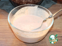 10. Приготовим простейший соус. Смешиваем в миске сметану с кетчупом (или пастой) и вливаем воду. Всыпаем по вкусу специи и перемешиваем. |