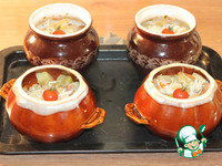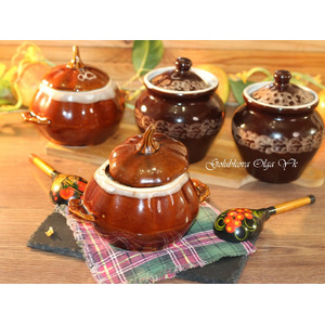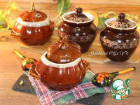 11. Разлейте соус по горшочкам. Накройте горшочки крышками и поставьте в разогретую до 180 С °С духовку на 60 минут или до готовности блюда. |