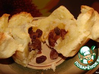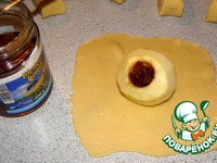 Каждый кусочек раскатать, уложить яблоко и наполнить его распаренным изюмом + 1/2 ч. л. меда |