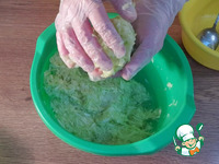 6. Отжимаем сок из кабачков и перекладываем в другую миску. В итоге должно получиться 970 гр кабачка |