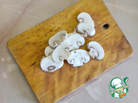 2-3 грибочка оставить для украшения тортика и нарезать тонкими слайсами. |