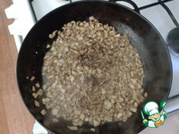 Затем их убрать и далее жарить почти до готовности грибы для начинки. |