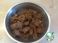 Печень промыть под проточной водой, снять пленки и удалить каналы. Нарезать средними кусочками. |