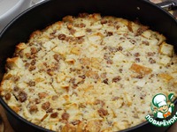 Форму смазываем сливочным маслом. Перекладываем в форму нашу массу, сверху посыпаем пирог масляными стружками. Ставим в разогретую до 180 градусов духовку на 60 мин. |