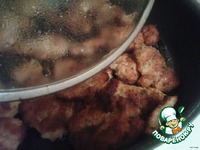 Мясо индейки разрезать на небольшие кусочки (поперёк волокна) |