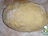 Из пачки масла, четырех яиц, молока с дрожжами, соли и муки (муку клала на глаз, тесто должно быть довольно плотным, но не крутым) замешиваем тесто.