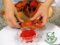 Раков охладите в отваре и выньте. На блюдо уложите колотый лед, в центр поставьте розетку с икрой, вокруг выложите вареных раков, оформите укропом. |