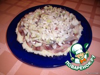 Второй слой - очищенная и порезанная кусочками селедка. |