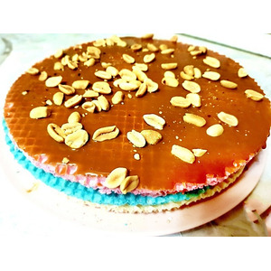 Промазанные коржи разрезать на равные части, посыпать орехами, залить глазурью и убрать в холодильник на 30 мин.