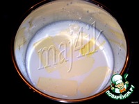 Заварное тесто: В кастрюльку с молоком положить маргарин и поставить на огонь. |