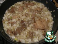 Закидать нарезанным лучком. Количество лука и форма его нарезки - по желанию. Обжаривать 10-15 минут. |