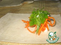 Майонез смешать с чесноком. Чайной ложечкой положить немного майонеза на морковь. Сверху зелень. |