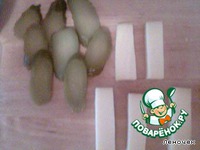 Сыр нарезать кусочками размером со школьный мелок, огурцы - пластинками |