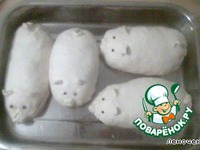 Тесто нарезать на части и раскатать размером со школьную тетрадь. На каждый кусок выложить начинку и свернуть. |