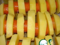 Режем картофель и морковку кружочками не менее 1 см шириной |