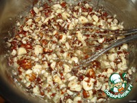 Масло растопить в сотейнике и добавить мёд и сахар покипятить минутки 3 орехи крупно раздробить и добавить в мёд перемешать |