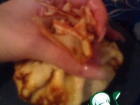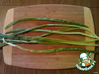 Затем собираем блинчик и немного сдавливаем его, чтобы лук хорошо завязывался и не соскальзывал. |