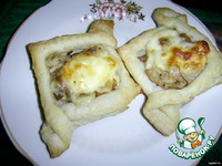 Описание: Вкусные, слоеные ромбики с начинкой из грибочков, сыра. Их можно есть просто с чаем, можно приготовить к приходу гостей, и к завтраку они будут хороши, и к ужину.