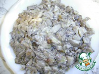 Сначала приготовить начинку. Обжарить грибы (любые свежие, у меня были вешенки) с лучком и со сметанкой. Сметанку выпарить, чтобы не было жидкости. |