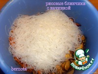рисовую лапшу заливаем кипятком на 10 мин. слили воду и добавляем в обжареные ингредиенты. солим перим по-вкусу. |