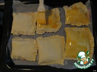Смазываем слойки взбитым желтком и ставим в духовку на 20 минут при температуре 150-170 градусов. P.S. У меня электродуховка |