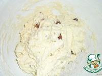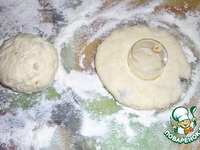 Сырой яичный желток и немного соли смешать с творожной массой (я брала с изюмом), добавить несколько ложек муки, разрыхлитель, и ванилинчик. Тщательно перемешать, до однородной массы. |
