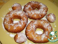 Описание: Когда-то в детстве, мама делала часто такие пончики, но шариками, а я их называла "колобочкам и". Очень вкусные, воздушные - просто тают во рту. Вот, вспомнила и решила немного изменить, но и о "колобочках " не забыла.
