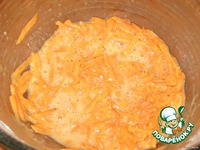 В яичную смесь добавить муку и морковь, все перемешать. |