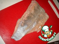 Первым делом разводим в воде желатин (70-80 мл).Я разводила в минеральной без газа.Оставляем набухать и тем временем беремся за нашу рыбку. |