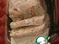 Добавить рыбу,мелко порезанный укроп.И в самом конце вливаем в эту массу доведенный до кондиции желатин. |