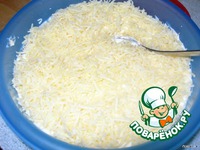 И украшаем тертым на средней терке сыром, даем салату постоять минут 30. |