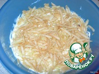 Трем на крупной терке яблоко и выкладываем следующим слоем |