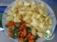 Режем болгарку (у меня была замороженная, я ее заранее режу и замораживаю :-[ ) и картошку произвольно, я тут так нарезала, но обычно режу соломкой |