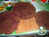 Готовые коржи намазать творожным кремом. Также смазать кремом бока и верхушку. |