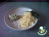 Чеснок натереть на мелкой терке, зелень мелко порубить, в се смешать с размягченным сливочным маслом и чуть-чуть посолить. Сыр натереть на терке. |