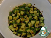 Сложить огурчики в миску и залить соевым соусом. Оставить мариноваться минимум 15 минут |