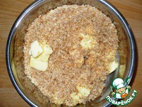 Бисквитные коржи раскрошить (я - при помощи блендера) и перемешать их со сливочным маслом. |