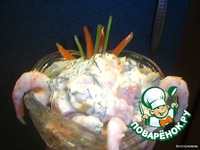 Описание: Очень нежный салатик, как и всe, что готовят из морепродуктов. Ведь скоро праздники 23 февраля и "Scarlett к 8 Марта"