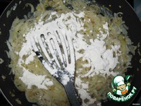 В обжаренный лук добавляем ложку муки, перемешиваем и обжариваем минуту-две |