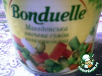 Овощную смесь (состав: морковь, зеленый горошек, зеленая фасоль, стручковая фасоль, цветная капуста) выливаем с жидкостью в кастрюлю |