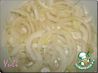 Формируем гнездо: смешиваем кальмары + лук полукольцами + картофель фри + майонез.. |
