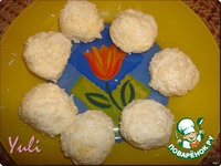 Сыр, белок и желток (по отдельности) натереть на мелкой терке. Раздавить чеснок. Формируем яйца: сыр+белок+чеснок+нем ного майонеза. Обвалять в желтке. |