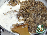 Поджарить лук с мелкопорезанными грибами, добавить зелень петрушки. Соединить их с соусом. |
