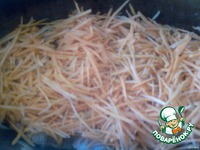 Выложить морковь на мясо, не перемешивать, потомить под крышкой минут 5-7. |