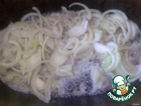 Лук нарезать полукольцами и обжарить в растопленном сале. |
