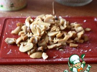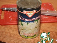 открываем банку с резаными шампиньонами и режем их по-нормальному. То есть мелко |