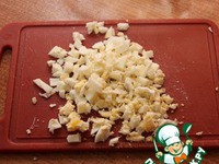Два вареных яйца мелко или не очень режем и отправляем к курице... пусть посмотрят, чтобы из них могло получиться :))))))) |