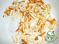 Туда же цукатов. У меня тоненькие полосочки мандариновых корочек. |