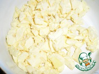 Замешиваем тесто: сахар взбиваем с яйцом; добавляем кефир, соду, муку, ванильный сахар и растопленное либо порубленное сливочное масло. |