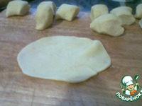 Из теста делаем жгутики, разрезаем на небольшие кусочки и раскатываем их. Мне нравится, когда тесто потолще. Формируем вареники. |